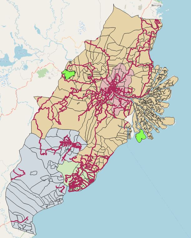 From Figure 11, the lines in red show connecting roads for East Kalimantan. Site 2 does not have any connecting roads leading to it, which makes it inaccessible. This might also be due to the face that the entrance to site 2 is blocked by forests as shown in figure 11.