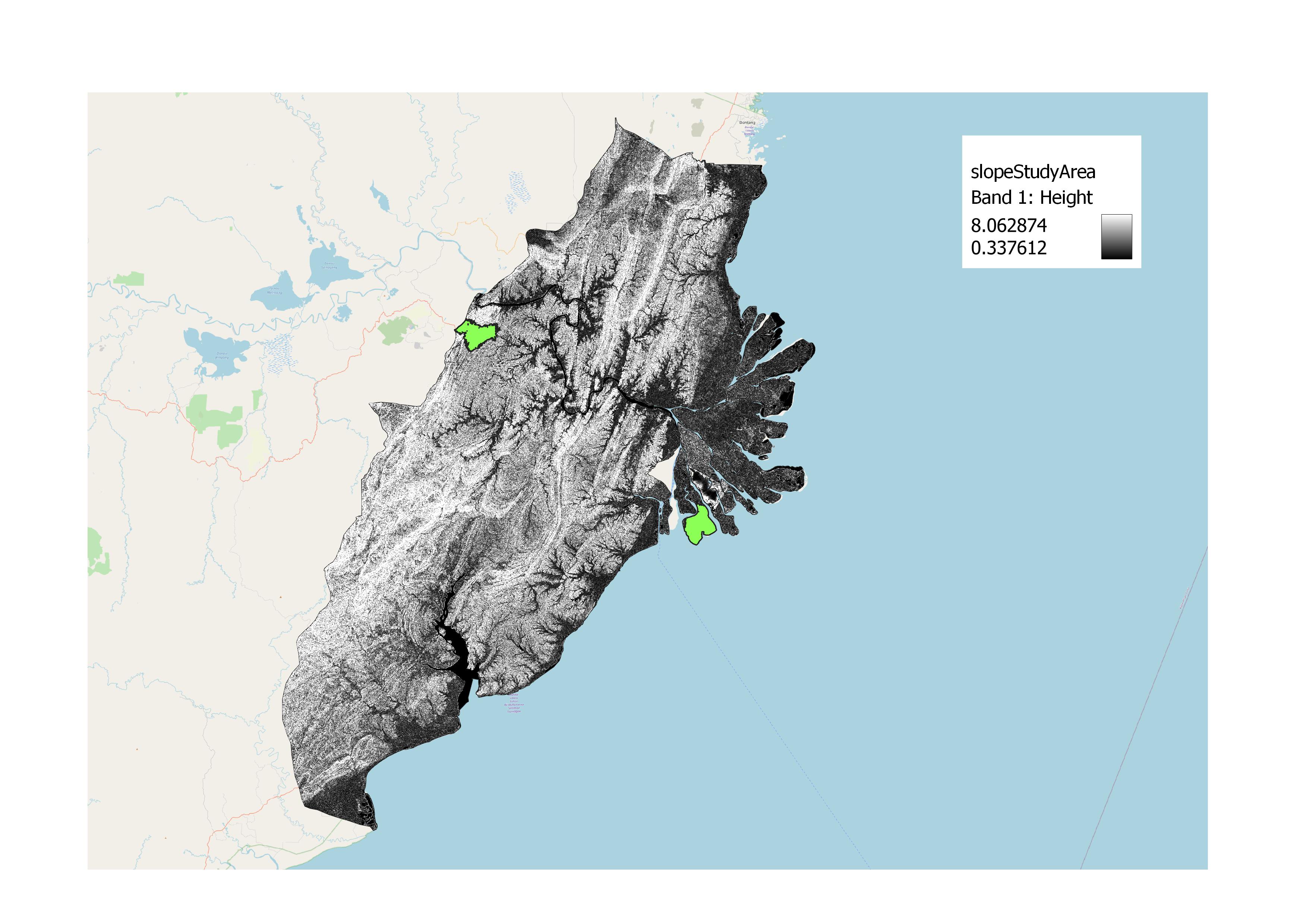 From Figure 13, White areas represent steeper slopes compared to darker areas. Based on this map, site 2 is more preferred because it has a gentler slope. Places with steeper slopes result in higher development cost due to the cut and fill.
