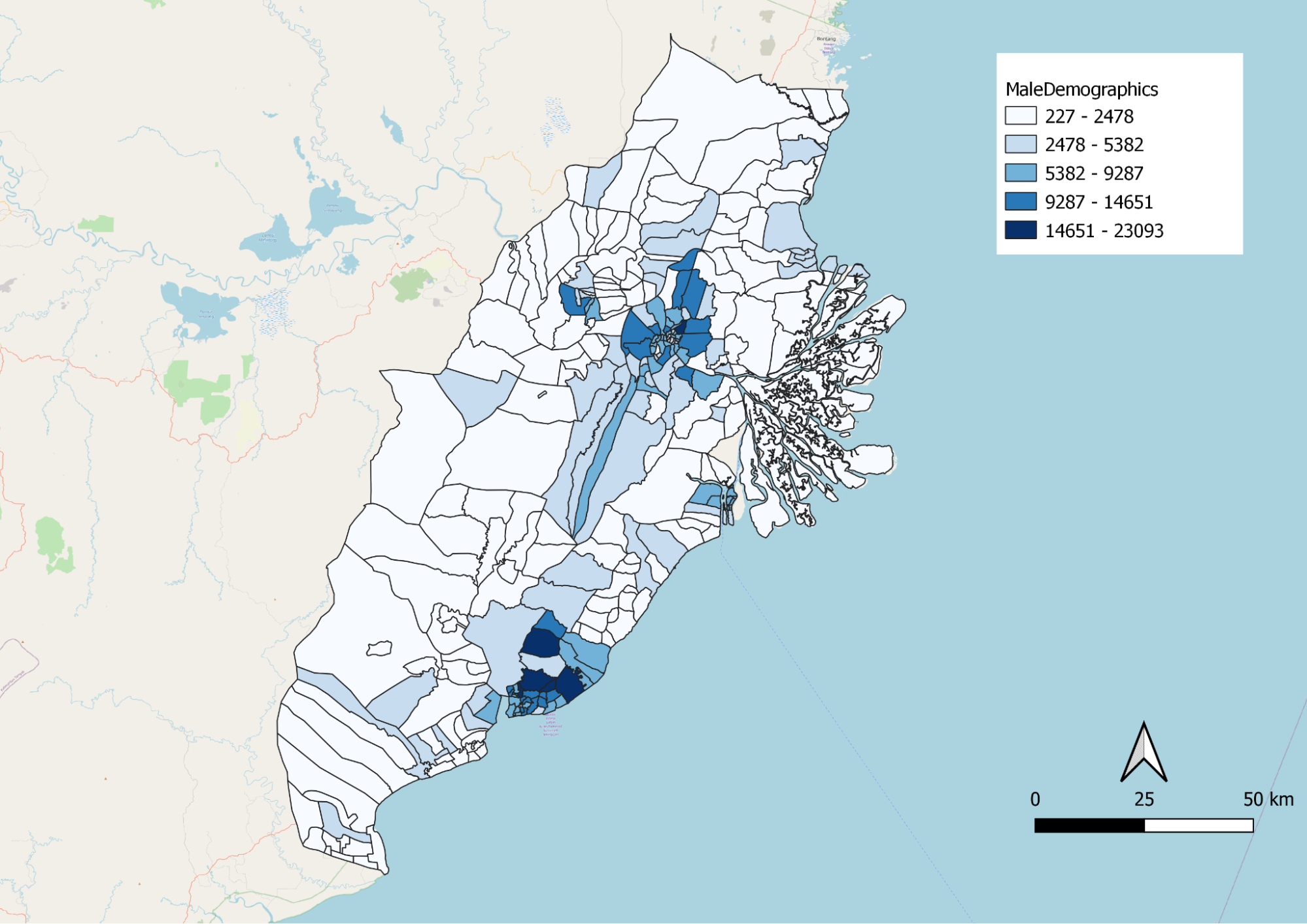 Figure 3: Male Demographics Distribution along study area