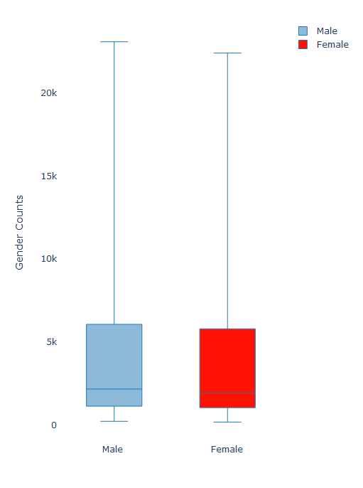 From Figures 3, 4 and 5 above, we observed that the distribution of male to female in our study area remains somewhat equal with both showing the same gender distribution. One notable difference between figure 3 and 4 is that in Cities like Samarinda and Balikpapan, there is a higher concentration of males and females which further substantiates our earlier discussion that population density is higher in city subdistricts.