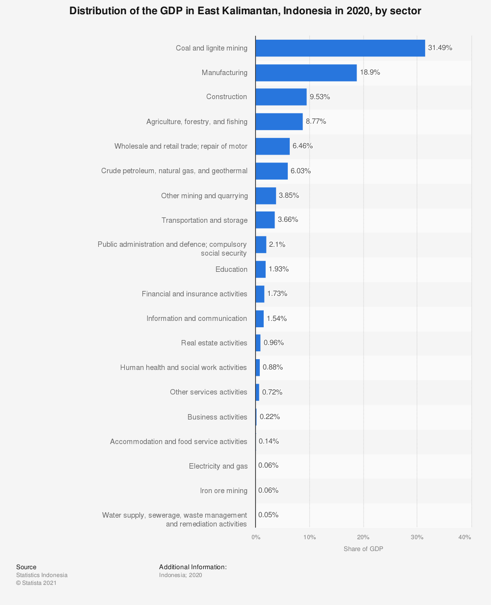Figure 7: East Kalimantan GDP distribution by sector (Statista Research Department, 2020)