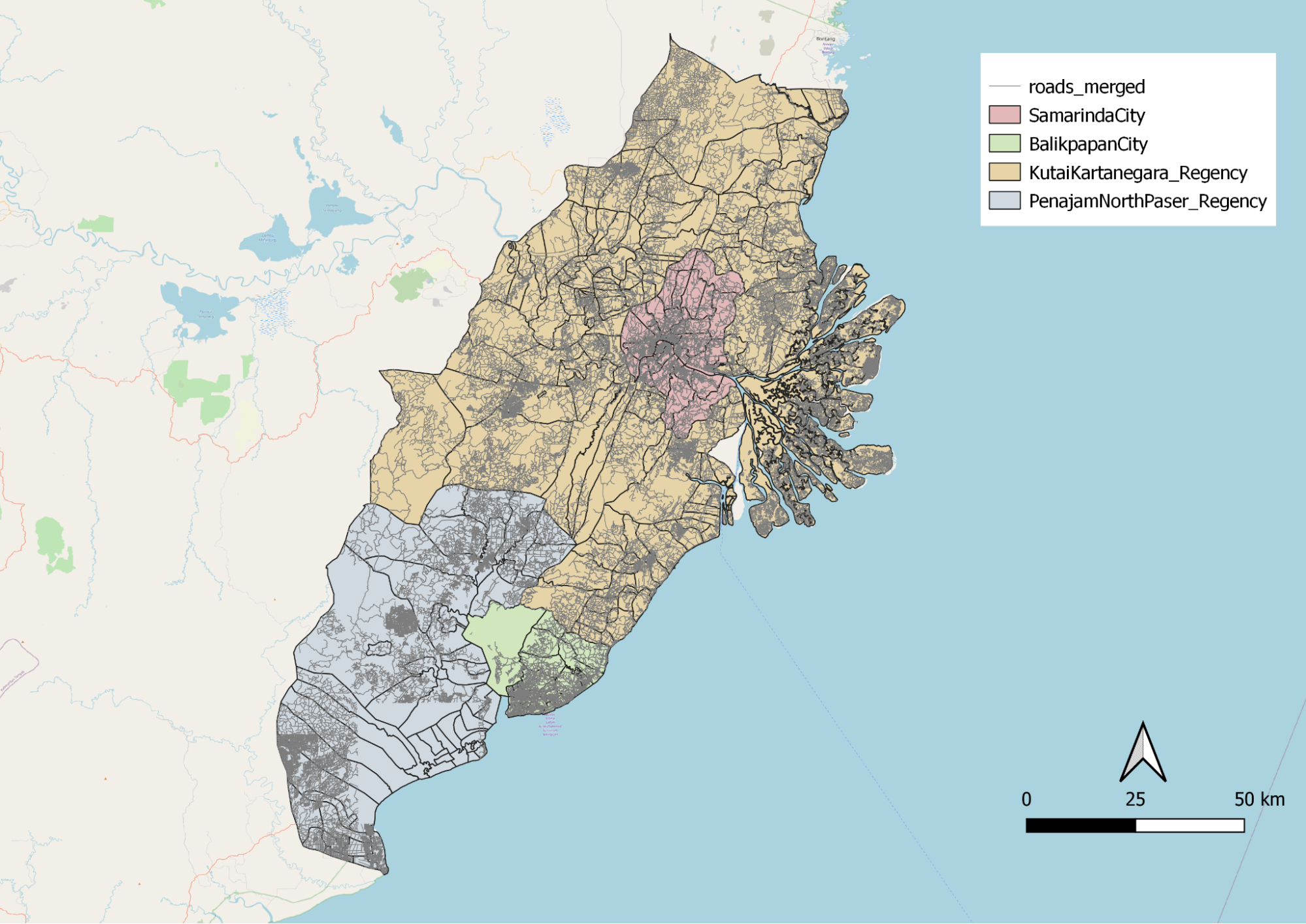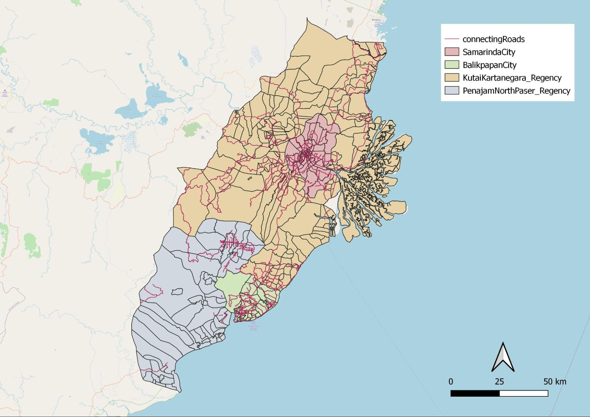 Figure 13a: Distribution of all Roads in East Kalimantan