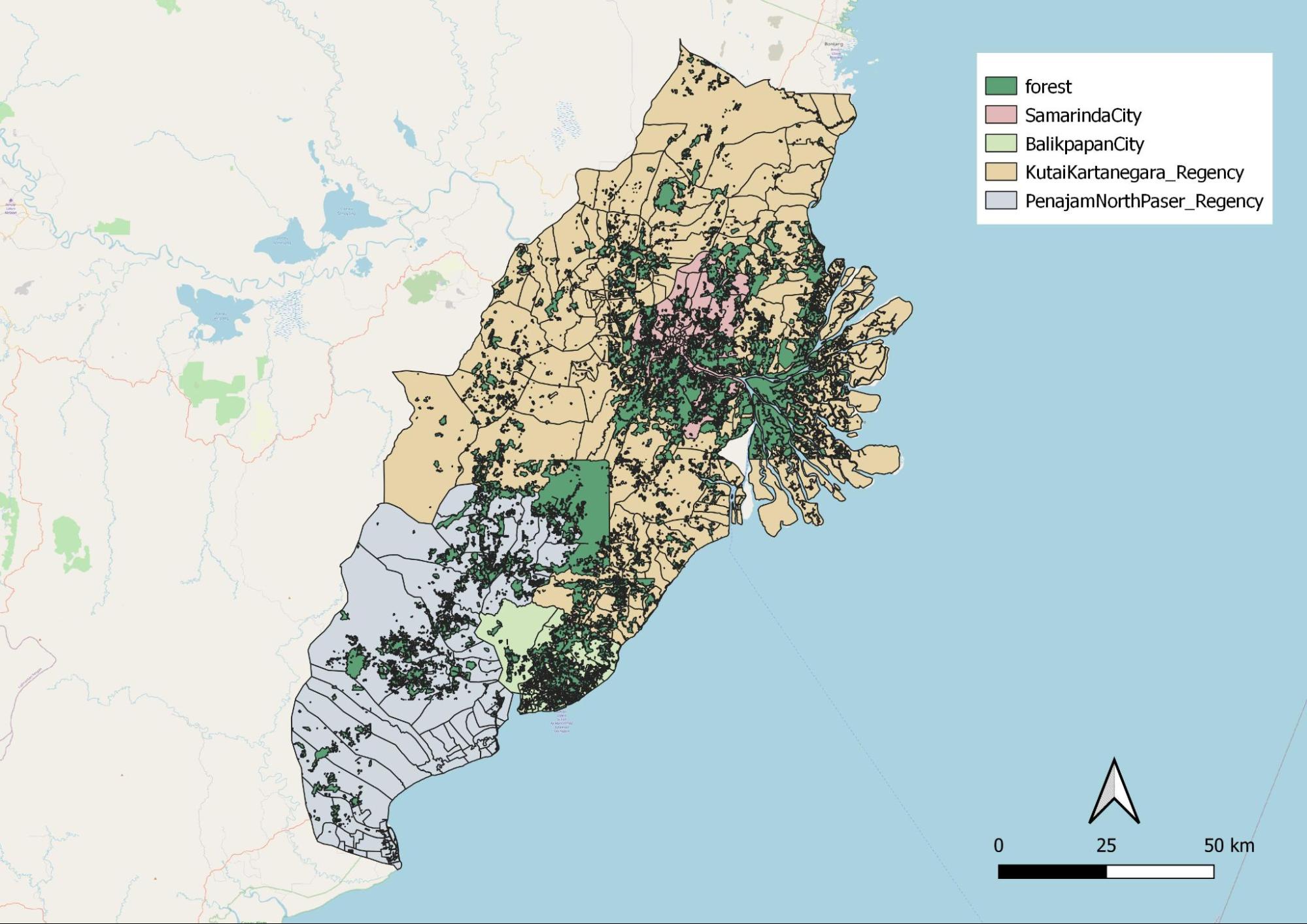 The rice field layer represents Sawah(wet-land) which contributes to part of East Kalimantan rice production. We observed that ricefield is more commonly dispersed around the north western site of the study area as well as a smaller proportion within Samarinda City.